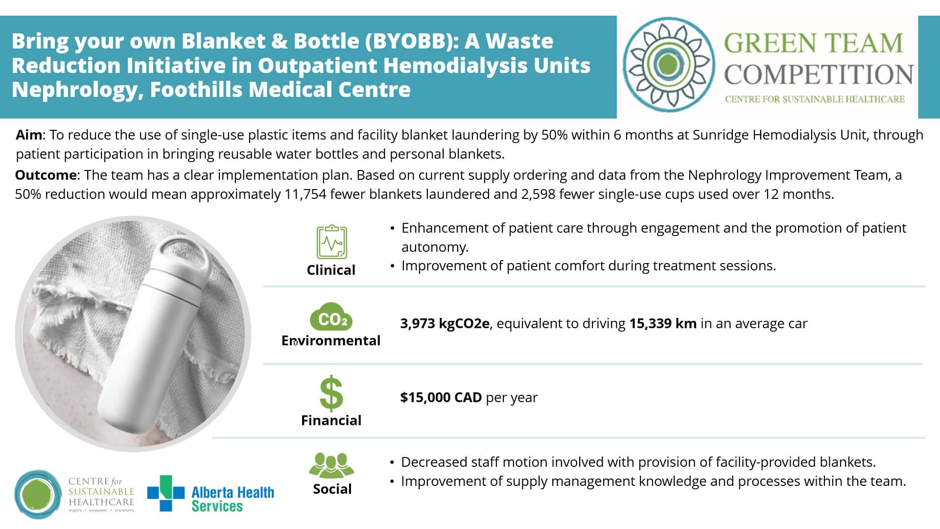 4. Bring your own Blanket & Bottle (BYOBB): A Waste Reduction Initiative in Outpatient Hemodialysis Units, Nephrology Team Foothills Medical Centre