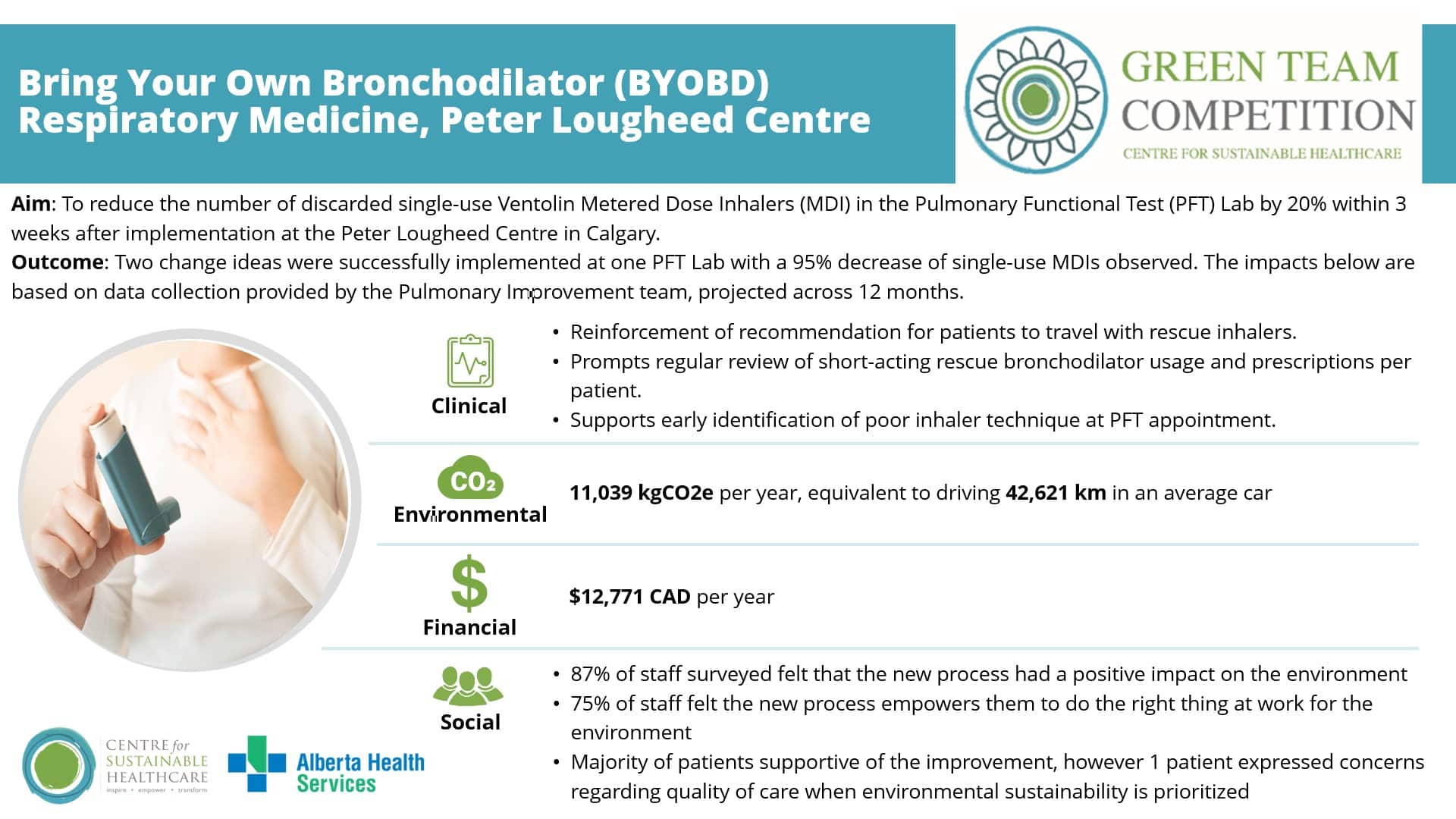 1. BYOBD – Reducing single-use metered-dose inhaler use in the pulmonary function lab, Peter Lougheed Centre Team