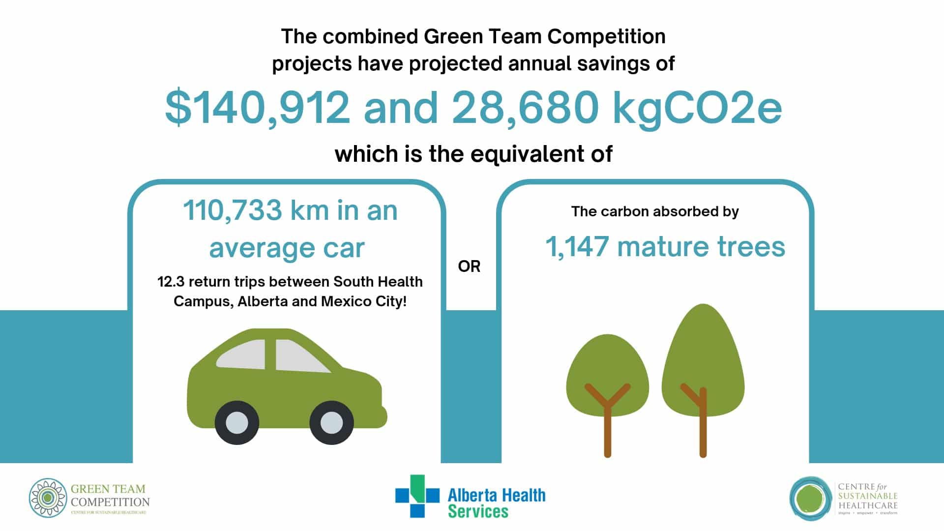 The Green Team Competition has brought meaningful, measurable value to AHS. Collectively, the projects delivered through the competition are forecast to achieve $140,912 CAD in annual cost savings and cut carbon emissions by approximately 28,680 kgCO₂e each year.