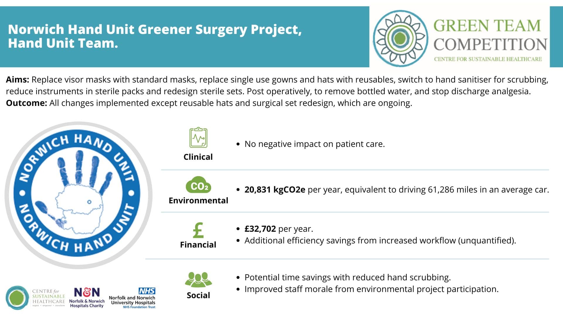 In May 2025, Norfolk and Norwich University Hospitals NHS Foundation Trust (NNUH) commenced a Green Team Competition in partnership with the Centre for Sustainable Healthcare.